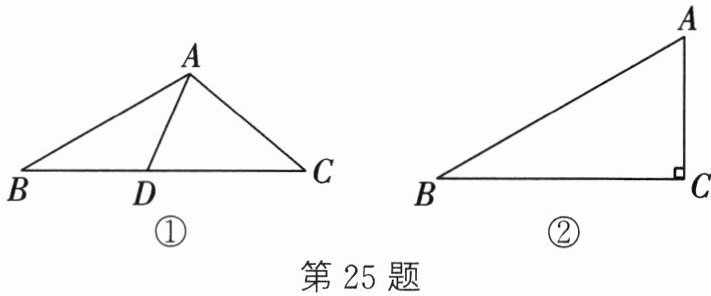 25. (12 分)从三角形一个顶点引出一条射线与对边相交,顶点与交点之间的线段把这个三角形分割成两个小三角形,若分得的两个小三角形中一个三角形为等腰三角形,另一个三角形的三个内角与原来三角形的三个内角分别相等,则称这条线段叫做这个三角形的“等角分割线”. 例如,等腰直角三角形斜边上的高就是这个等腰直角三角形的一条“等角分割线”.