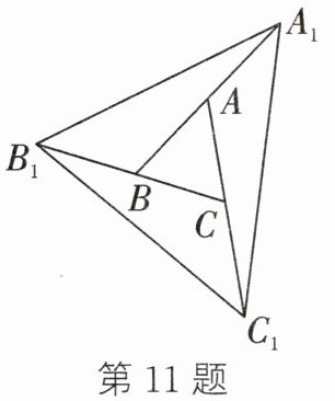 11. 如图,$A$、$B$、$C分别是线段A_1B$、$B_1C$、$C_1A$的中点,若$\triangle ABC的面积是1$,那么$\triangle A_1B_1C_1$的面积是______