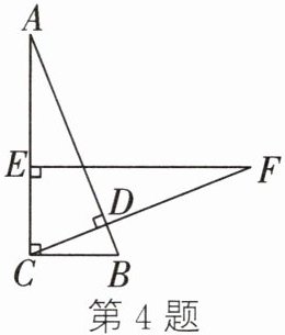 4. 如图,在Rt△ABC中,∠ACB= 90°,BC= 2cm,CD⊥AB,在AC上取一点E,使EC= BC,过点E作EF⊥AC交CD的延长线于点F,如果EF= 5cm,那么AE= ______
