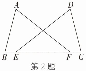 2. 如图,点E、点F在BC上,BE= CF,∠B= ∠C,添加一个条件,不能证明△ABF≌△DCE的是 (
