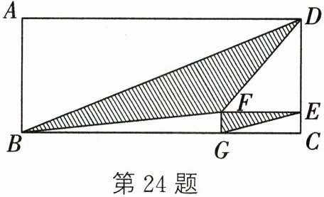 (3)在(2)的条件下,将长方形ABCD及长方形CEFG按照如图方式放置,其中点E、G分别在边CD、BC上,连接BD、BF、DF、EG.若$ A B = 2 x , B C = 8 x , C E = y , C G = 4 y $,求图中阴影部分的面积.