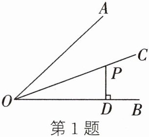 1. (2024·青海中考)如图,OC平分∠AOB,点P在OC上,PD⊥OB,PD= 2,则点P到OA的距离是 (