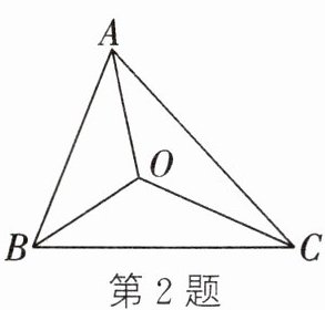 2. 如图,在△ABC中,∠BAC和∠ABC的角平分线交于点O,AB= 6 cm,BC= 9 cm,△ABO的面积为18 cm^2,则△BOC的面积为 (