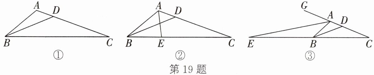 19. 如图①,在△ABC中,∠A= 120°,∠C= 20°,BD平分∠ABC,交AC于点D.