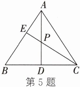 5. 如图,在$△ABC$中,$AD是BC$边上的高线,$CE是△ABC$的一条角平分线,$AD$、$CE相交于点P$.已知$∠APE= 55^{\circ }$,$∠AEP= 80^{\circ }$,则$∠B= $______