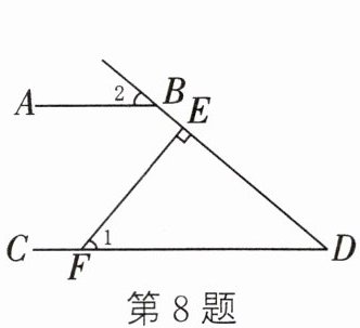 8. 如图,$AB// CD$,$EF⊥BD$,垂足为$E$,$∠1= 50^{\circ }$,则$∠2$的度数为(
