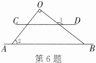 6. 如图,直线$AB // CD$,$OA \perp OB$。若$\angle 1 = 142^{\circ}$,则$\angle 2 = $
