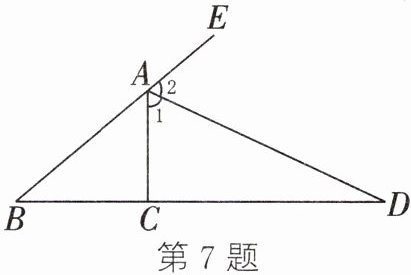7. 如图,在$\triangle ABC$中,$AD是\triangle ABC的外角\angle EAC$的平分线,且交$BC的延长线于点D$,你能比较$\angle ACB与\angle B$的大小吗?说出你的理由。