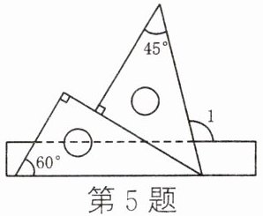 5. 将一副三角尺按如图所示的位置摆放在直尺上,则$\angle 1$的度数为