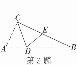 3. 如图,在$\triangle ABC$中,$\angle ACB = 90^{\circ}$,将$\triangle ACD沿CD$折叠,使点$A恰好落在BC边上的点E$处。若$\angle B = 25^{\circ}$,则$\angle BDE = $