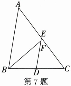 7. 如图,在△ABC中,D、E分别是BC、AC的中点,DE//AB,BF平分∠ABC,交DE于点F.若BC= 8,则DF的长是 (