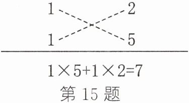 15. 在因式分解中有一类形如二次三项式$x^{2}+(p+q)x+pq= (x+p)(x+q)$的分解因式的方法叫“十字相乘法”. 例如:将二次三项式$x^{2}+7x+10$因式分解,这个式子的二次项系数是1,常数项$10= 2×5$,一次项系数$7= 2+5$,则$x^{2}+7x+10= (x+2)(x+5)$,如图所示:
