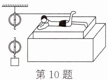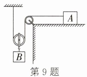 9. 如图所示,物体A重100N,物体B重20N,动滑轮重10N,此时物体B匀速下降,若不计绳重和摩擦,则物体A与水平面的摩擦力为()