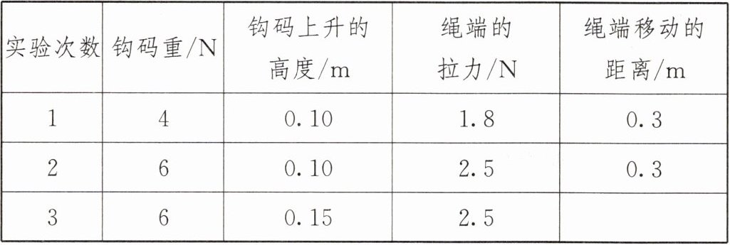 11. 某同学用如图所示的实验装置探究滑轮组的特点,相关数据记录在下表中。