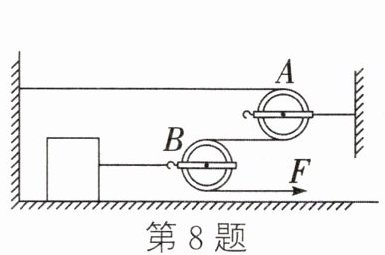 7.(2024·甘肃)将物体A、B置于如图所示的装置中,物体B恰好匀速下降,已知A重60N,B重10N,则A所受地面的摩擦力为____N;若对A施加一个水平向左的拉力F,刚好使A在原来的水平面上匀速向左运动,则拉力F大小为____N(不计绳重、滑轮重及绳子与滑轮间的摩擦)。