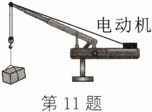 11. (2024·宿迁)如图所示的小型起重机,某次吊起重为$6× 10^{3}\mathrm{N}$的物体,电动机的拉力为$4× 10^{3}\mathrm{N}$,用时$20\mathrm{s}$,使物体上升了$5\mathrm{m}$。则通过动滑轮()