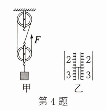 4. 用图甲滑轮组做“探究动滑轮的重对滑轮组机械效率的影响”实验。把不同的磁铁吸附在动滑轮边框上以改变滑轮的重,拉动绳子使物体每次上升距离均为10cm,不计绳重,实验数据如下表。