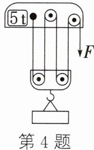 4. (2024·苏州)某起重机的滑轮组结构示意图如图所示,其最大载重为5t。起重机将3600kg的钢板匀速提升到10m高的桥墩上,滑轮组的机械效率为80%。不计钢丝绳的重力和摩擦,g取10N/kg。求: