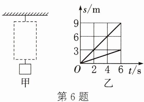 6. (2024·德州改编)如图甲所示,虚线框内是两个滑轮连成的滑轮组,工人利用该滑轮组,用200N竖直向上的拉力F,将物体匀速提高3m,物体和绳子自由端的运动情况如图乙所示,已知动滑轮重120N,不计绳重和摩擦,下列说法正确的是 ()