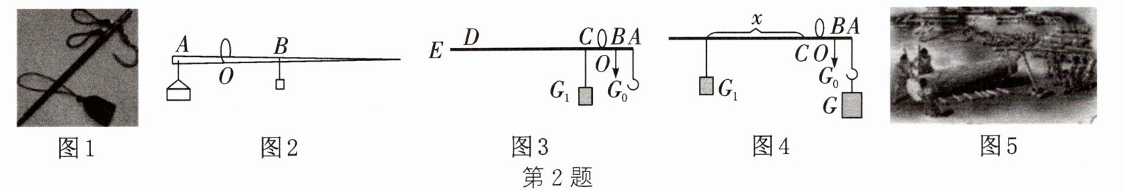 (5) 完成实验后,小明联想到了古人利用木棒搬动巨大的木料也用到了相同的原理。如图5是我们的祖先通过横杆、支架、石块等,将巨木的一端抬起,垫上圆木的劳动场景。结合制作杆秤的收获,小明认为:如果在人员有限的情况下,要抬起巨木,可以采用在不改变支点位置的情况下,让压横杆的人____支点移动等方法来实现。