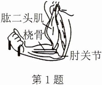 1. (2024·河南)人体中有很多结构可简化为杠杆。如图,手提起物体时,肱二头肌桡骨在肱二头肌的收缩牵引下绕肘关节转动,这是一种______杠杆,此过程中肱二头肌收缩的距离______(大于/等于/小于)手移动的距离。
