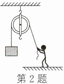 2. (2024·云南)如图所示,美丽乡村建设的工地上,工人使用一个______(定/动)滑轮匀速提升重300N的建筑材料(不计绳重和摩擦),则人的拉力为______N。
