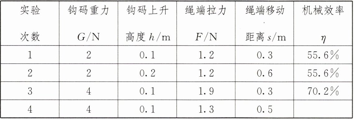 10. 如何提高滑轮组机械效率,节约能源,同学们进行了“影响滑轮组机械效率因素”的实验探究,用到的装置如图所示,实验数据记录如下表所示。