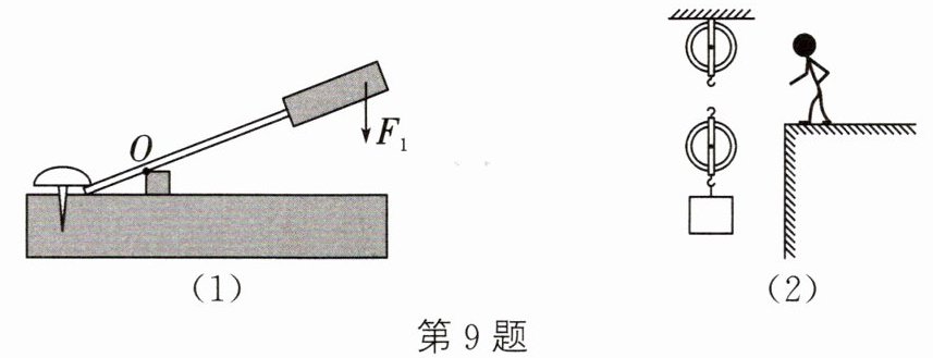 9. (1)(2024·盐城)如图所示,画出用起子撬图钉的动力$F_{1}的力臂l_{1}$。