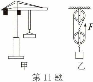 11. (2024·巴中)如图甲所示的塔吊是施工建设中最常见的设备,其结构可简化为如图乙所示的滑轮组模型。已知物体质量为300kg,在绳子自由端施加1250N拉力,物体以0.5m/s的速度匀速上升10s。求: