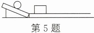 5. (2024·长春改编)用下列实验器材:带有合页的长木板、木块、小球、弹簧测力计,探究物体的动能跟运动速度的关系,如图所示。