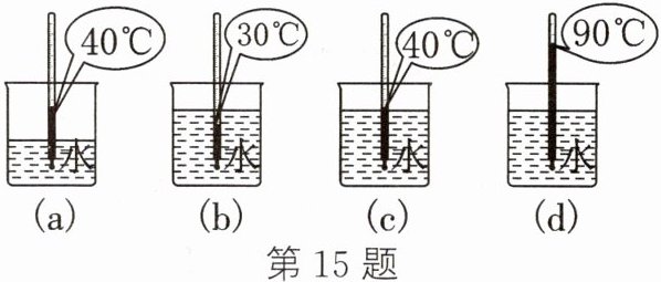 (2)如图所示,(a)杯中水量较少,(b)(c)(d)杯中的水量相同。根据问题(1)中所得的推理性结论,比较各杯中水的内能的大小:______杯中水的内能最大,因为______;______两杯中水的内能无法比较,因为______。