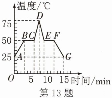 13. 如图是某晶体的熔化和凝固图像,0~3min内,该物体的内能______(增加/减少/不变,下同),3~6min内,该物体的内能______;9~12min内,该物体的分子总动能______,分子总势能______;12~15min内,该物体的内能______。