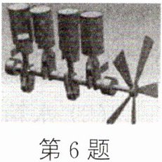 6. 某工厂制作了一个小型的潜水器,如图为其动力装置,是单缸四冲程内燃机带动螺旋桨推动潜水器前进。一个缸活塞面积是$200cm^2。$一个冲程活塞运动的距离为0.2m,做功冲程中燃气对活塞的平均压强是$5×10^6Pa,$曲轴的转速是600r/min。