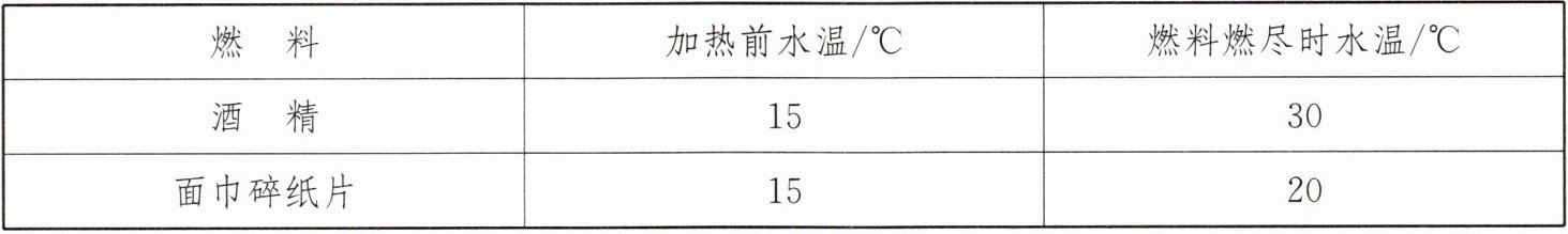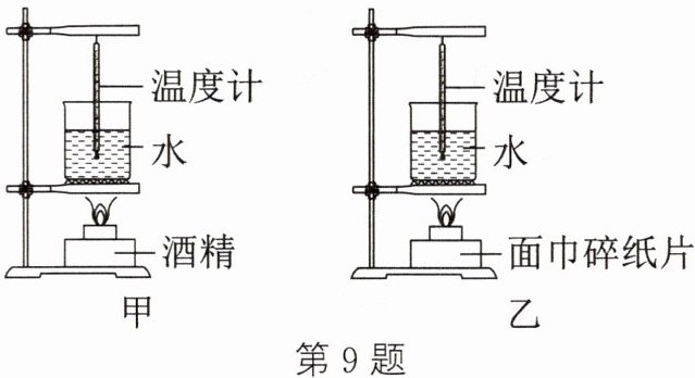 9. 学习了热值之后,小聪设计了一个实验来比较酒精和面巾碎纸片的热值大小,如图所示。