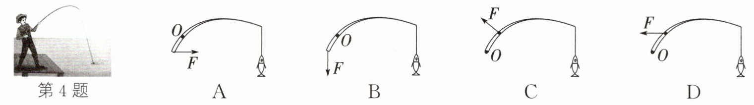 4.(2024·南通)钓鱼活动深受人们喜爱。如图是钓鱼的情景,你认为最合理的拉起鱼竿的方式是()