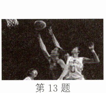 13. 如图是杭州亚运会女篮决赛中,中国队战胜日本队夺冠的画面。投篮时,篮球离开手后继续向上运动的过程中,______能转化为______能。篮球被篮板弹回的过程,______能转化为动能。
