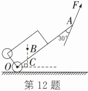 12. 如图所示为一拉杆旅行箱的示意图,将其视为杠杆,O为支点,B为重心,BC为竖直方向,A为拉杆端点。已知箱重为250N,OA为120cm,OC为24cm。求: