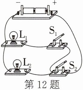 12. 某小组连接了如图所示的电路来探究开关的控制作用,以下判断正确的是 ()