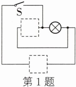 1. 在虚线框内画出电源和小灯泡的电路元件符号,要求:开关控制两灯同时亮或熄灭。