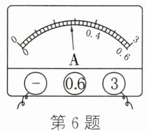 6. 如图所示,小明同学发现电流表“$0\sim 3A$”的量程刻度值没有标注,“$0\sim 0.6A$”的量程刻度值标注不清。则此时电流表的正确读数是()
