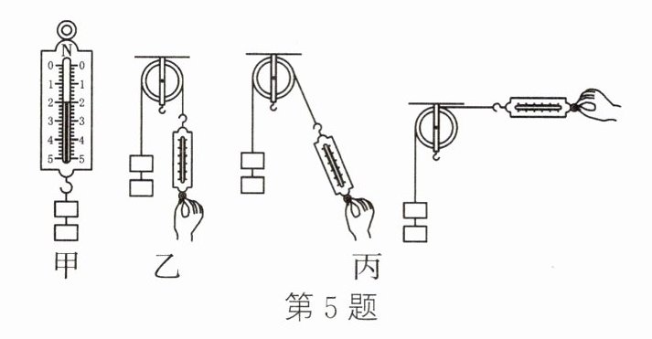 5. 滑轮是一种常用的简单机械。使用定滑轮在省力和省距离等方面有什么特点? 以下是小丽对此进行的实验: