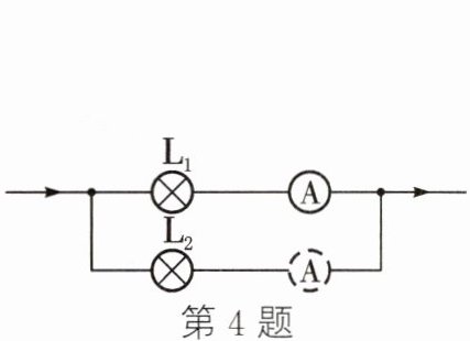 4. (2024·宿迁改编)在“探究并联电路电流特点”的活动中,部分电路如图所示,电流表有“0~0.6A”和“0~3A”两个量程,测量了灯$L_{1}$的电流为0.3A,已知$L_{2}中电流比L_{1}$中小。为完成实验探究,做法正确的是()