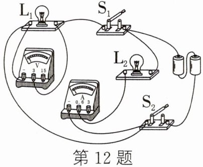 12. (2024·眉山)如图所示电路,闭合开关$S_{1}$、$S_{2}$,小灯泡$L_{1}和L_{2}$均正常发光,电流表和电压表均有示数。下列关于电路分析正确的是()
