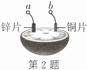 2. 某物理信息小组同学用橙子、铜片、锌片和导线制作了一个如图所示的水果电池,其中a和b为接线头。