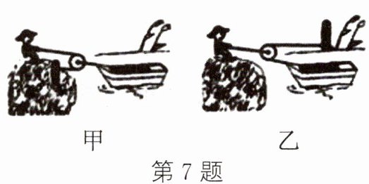 7. 如图是小聪为拉船靠岸而设计的甲、乙两种方案,若拉船的力需要很大,则应选用____(甲/乙)方案,采用这种方案的缺点是____(不计机械的自重及摩擦)。