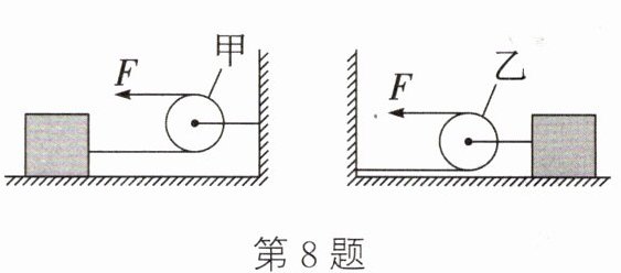 8. 如图是滑轮的两种用法,以下说法中正确的是()