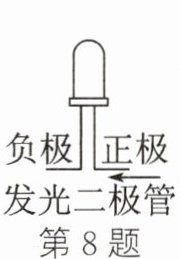8. 小明发现空调和台灯的电源线虽然都是铜线,但规格明显不同,这主要是因为____(长度/横截面积)对导线电阻的影响。发光二极管具有单向导电性,它是利用____材料制成的。