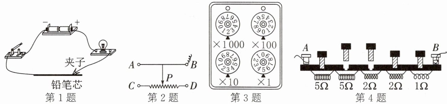 4. 如图所示是插入式电阻箱的结构示意图,图中A、B两个接线柱之间的电阻值是____Ω,A、B两个接线柱之间能提供的最大电阻值是____Ω。