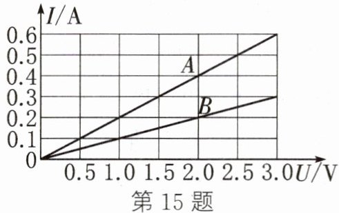 15. 在某一温度下,连接在电路中的两段导体A和B中的电流与其两端电压的关系如图所示,由图中信息可知下列说法正确的是()