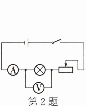 2. 如图所示,闭合开关,在测量灯泡电阻的过程中,如果将滑动变阻器滑片向左移动,则灯泡的亮度变____,电流表的示数变____,电压表的示数变____,灯泡的电阻